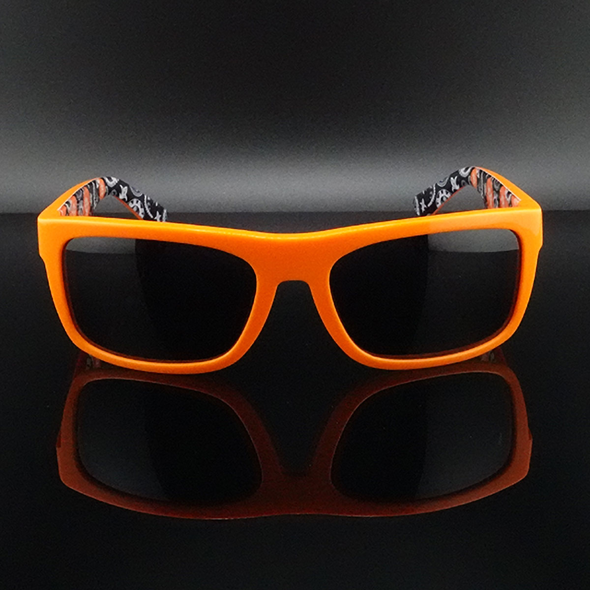 * Black lenses in prototype photos only — final pairs flex maximally orange mirrors. Supply chain was on fiat time.