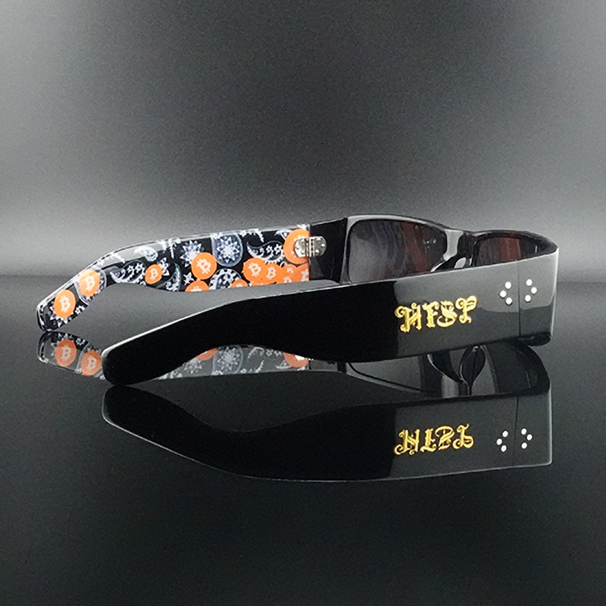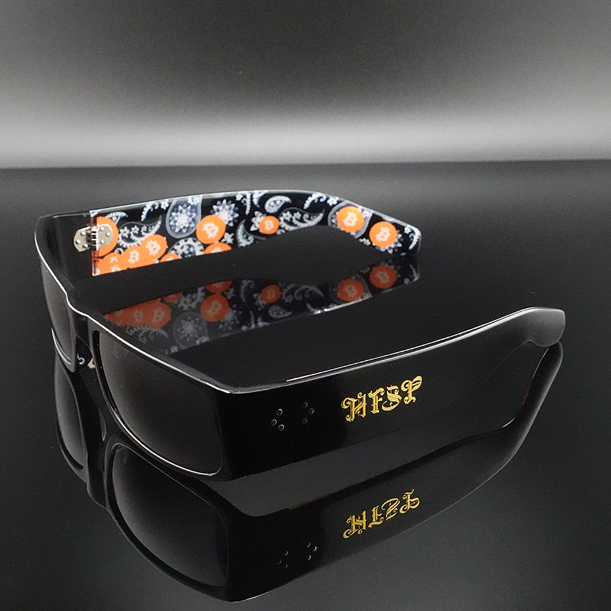 Lux Gloss Acetate Frames • UV400 polarized lenses • HFSP laser-etched arms • Custom BTC OG Maxi Art sublimated inside arms